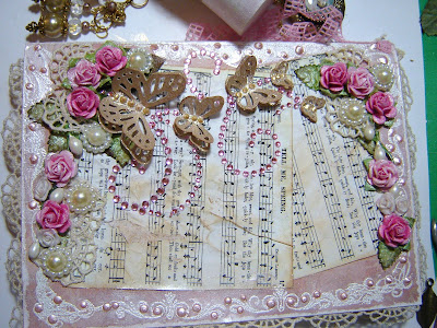 It seems like I've been working on this project forever but it is getting close to being finished now. I am adding the finishing touches to the journal that will go inside the box now. I found myself searching all over town last weekend in search of the perfect ribbon to attach the coordinating bookmark with and I finally found it.